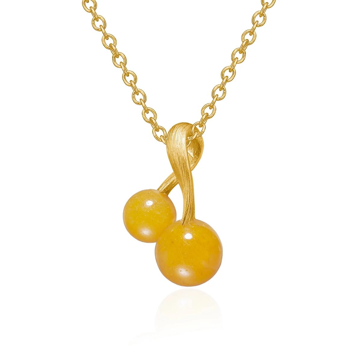 Vega-anhenget består av to perler av aventurin som er forbundet med et løkkebånd. Det organisk formede gullstykket 18 K har den matte overflaten med fine, håndfilede linjer som kjennetegner Vega-kolleksjonen.