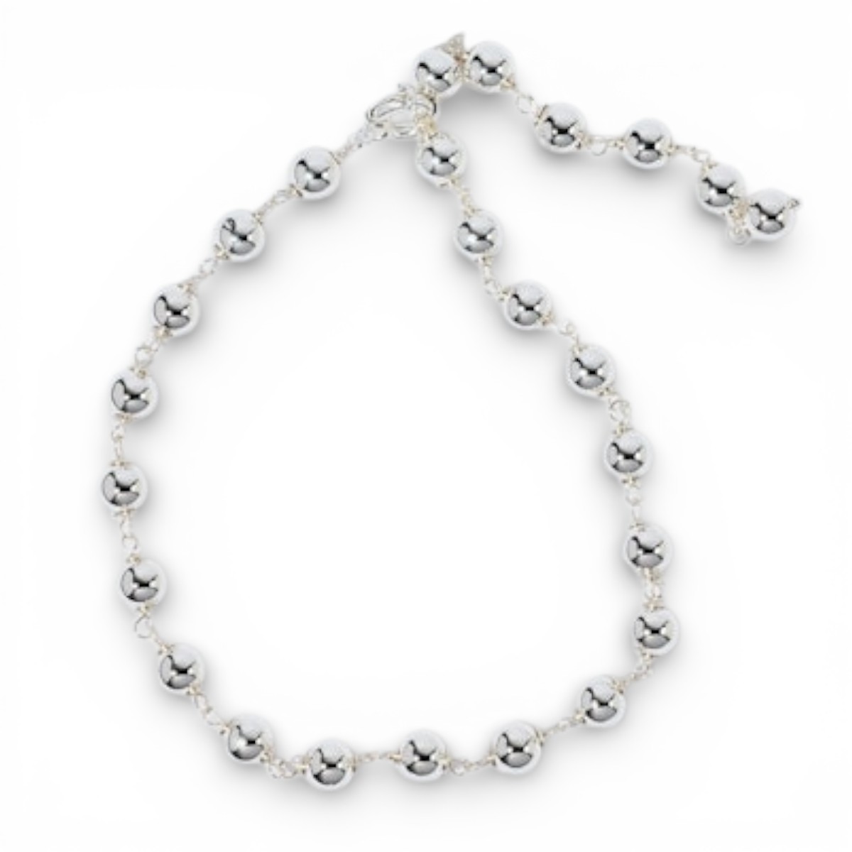 Dette halskjedet er en elegant vri på Pearl Octopuss.y`s kuleserie, med høyglansende metallkuler som er vridd sammen individuelt. Den åpne låsen gir fleksibel bruk og et avslappet preg.