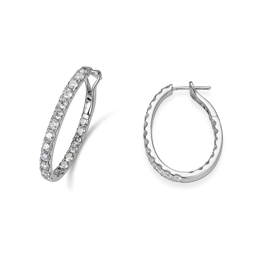 Imponerende og luksuriøse creoler i hvitt gull, designet for maksimal glans og eleganse. Øreringene er besatt med hele 42 briljantslipte diamanter med en totalvekt på 3,31 ct, som gir et enestående og intenst spill av lys fra alle vinkler.