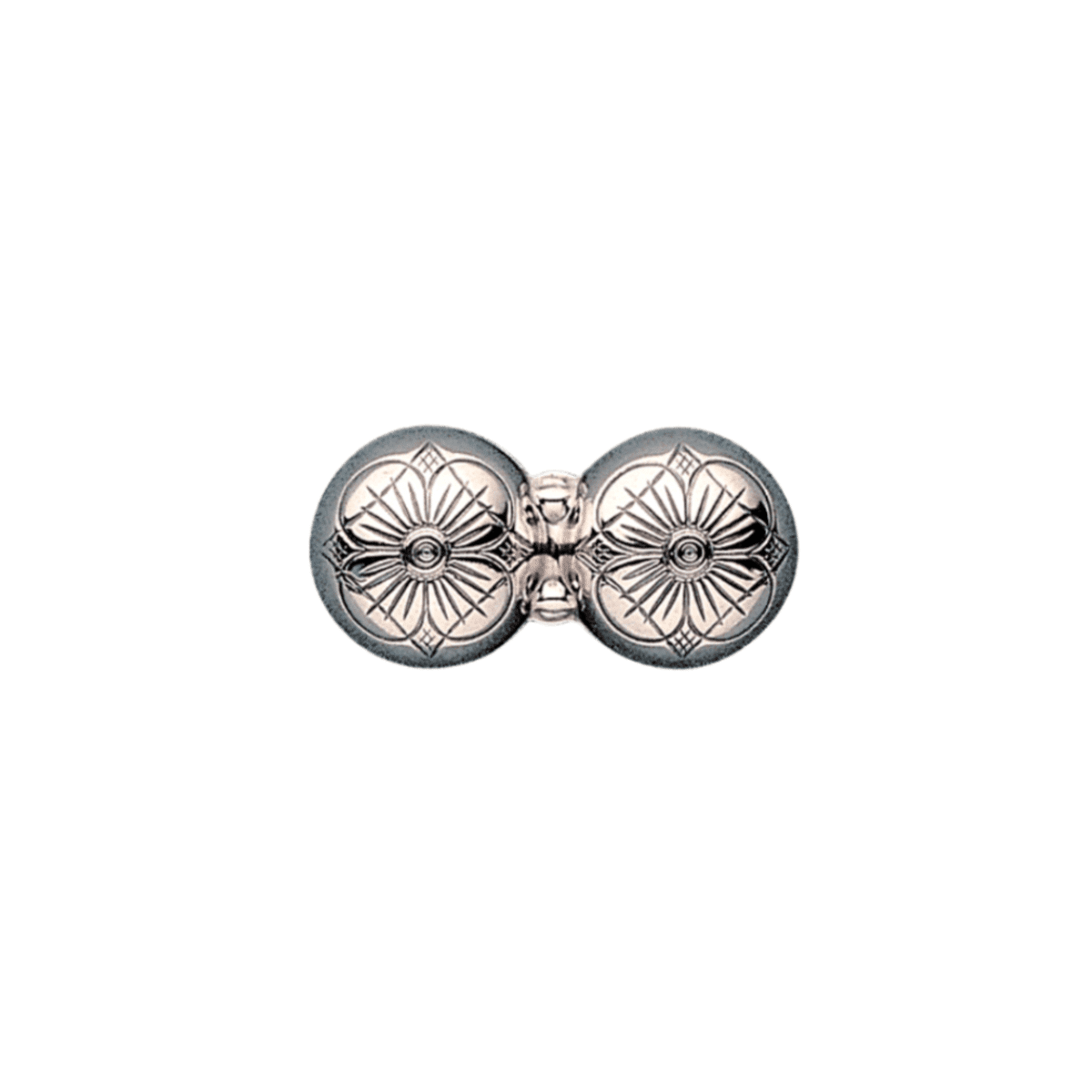 Dobbel halsknapp i oksidert sølv med tradisjonell firkløvermotiv for hell og lykke.