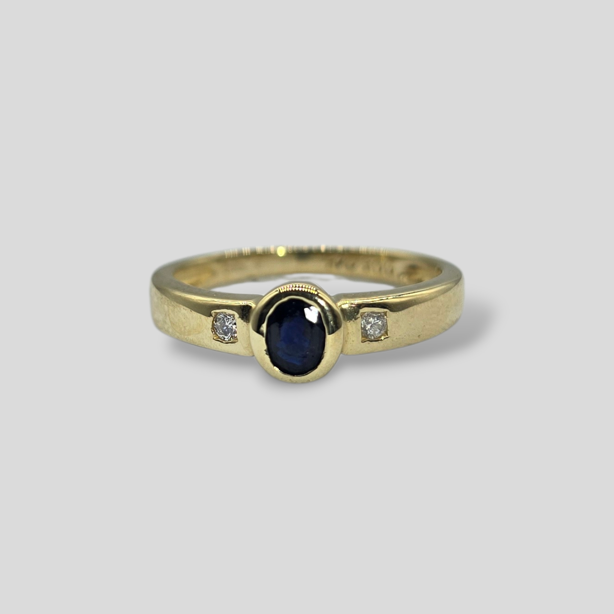 Materiale: 14k (585) gultgull. 1 Safir , 2 brill a 0,025ct