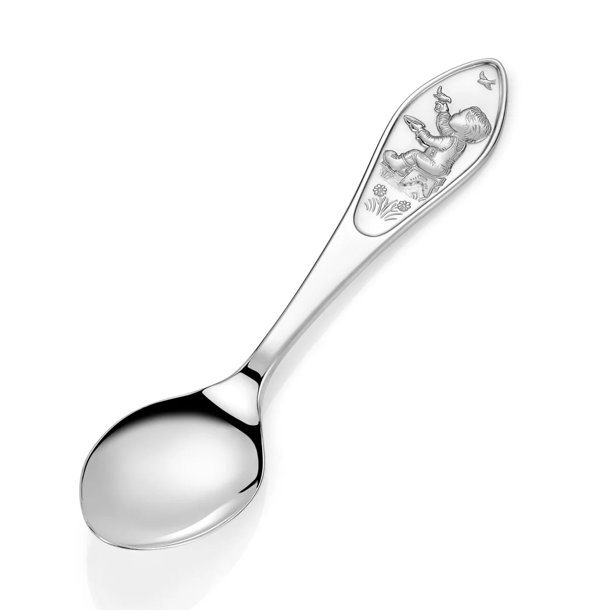 Babyskje i serien Du som metter liten fugl. I denne serien finnes også barnekniv, barneskje, barnegaffel, sølvkrus, sølvskål, porselensservise, smykkeskrin, lommekniv og fotoramme. Skjeen er produsert i sølv (925s), i EIKs lokaler i Tønsberg. Leveres i flott gaveeske.