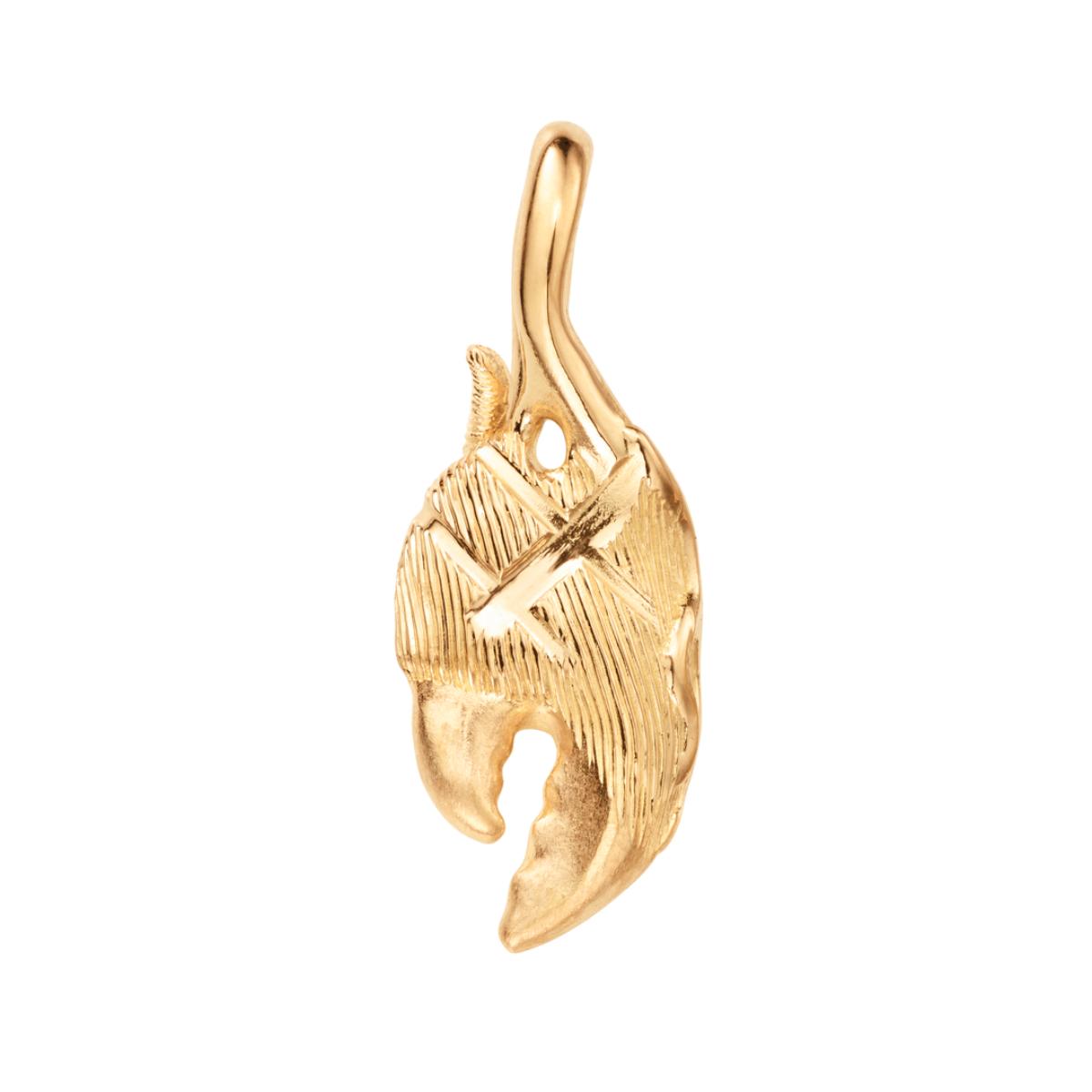 Designet av Sofia Lynggaard Normann. Dette Claw-anhenget er laget av 18k gultgull. Kloen har en detaljert tekstur, sammensatt av et avansert mønster av satiniserte, polerte, sandblåste og børstede overflater, håndlaget av mestergullsmeder. Lengden på anhenget er 3,1 cm.