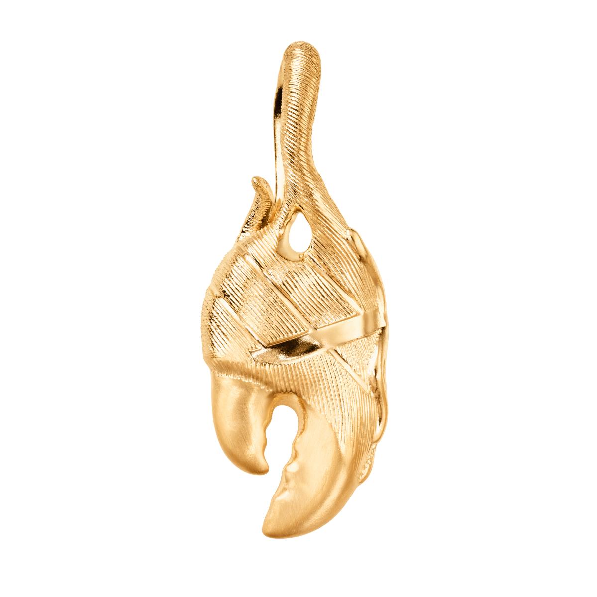 Designet av Sofia Lynggaard Normann. Dette store Claw-anhenget er laget av 18k gultgull. Kloen har en detaljert tekstur, sammensatt av et avansert mønster av satiniserte, polerte, sandblåste og børstede overflater, håndlaget av mestergullsmeder. Lengden på anhenget er 5,5 cm.